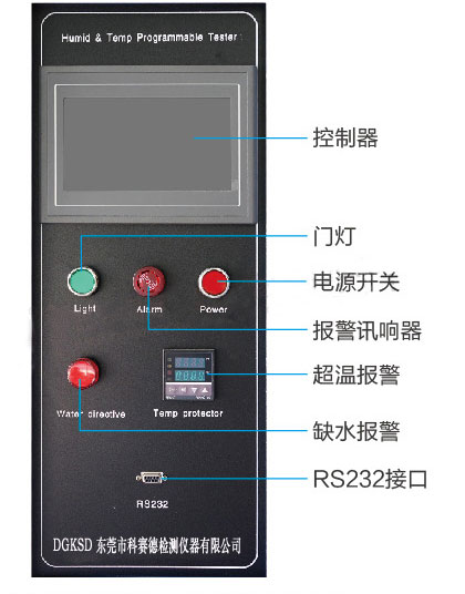 門燈:測試中若欲觀察箱內(nèi)變化狀況時,開啟此開關(guān),由視窗知曉內(nèi)部變化情形。